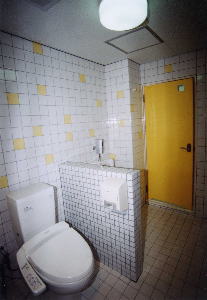 ロビーのトイレは白と黄色を基調に